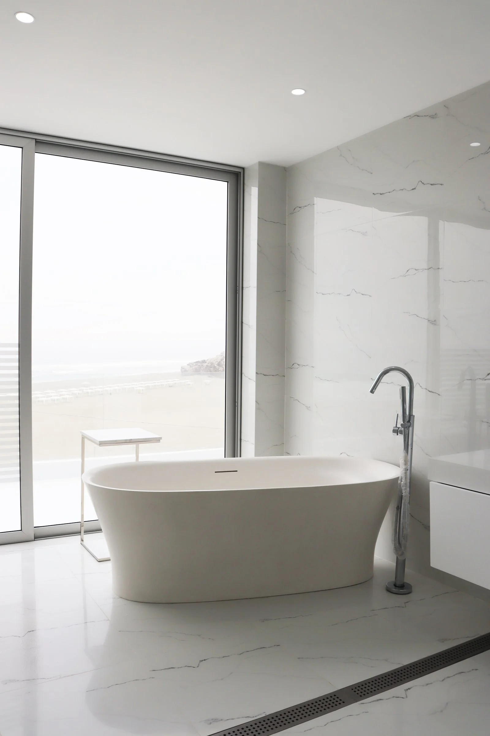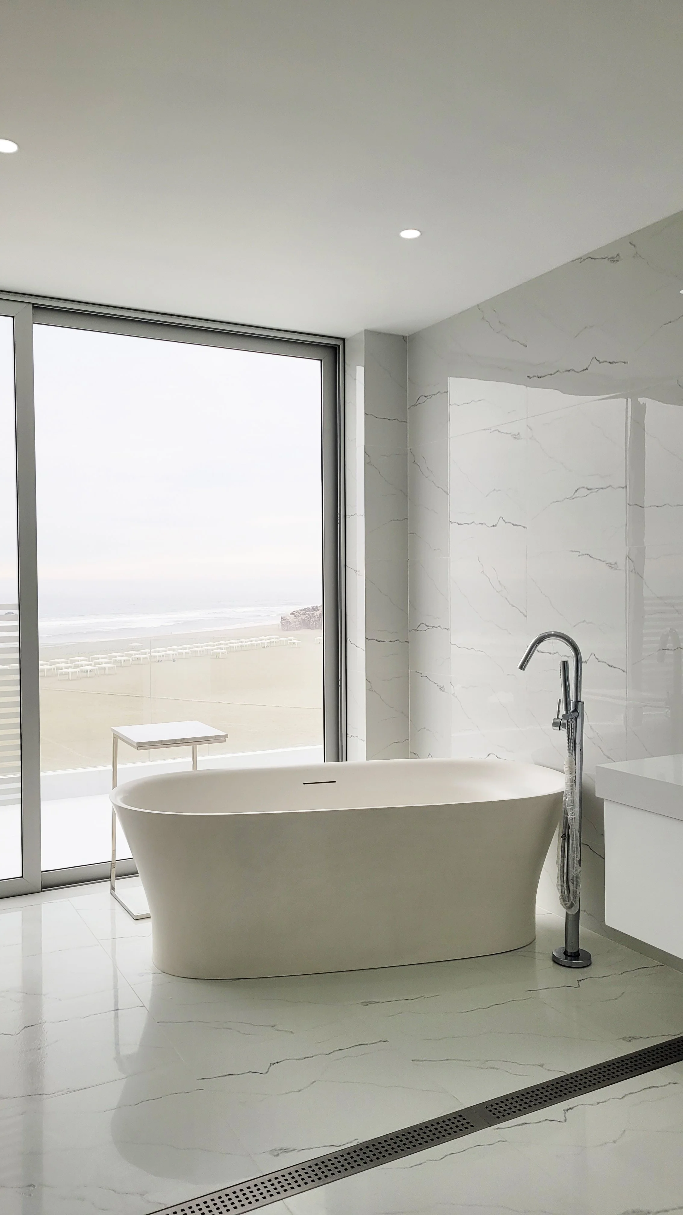 << El color blanco representado y proyectado en diferentes materiales le otorga esa elegancia, amplitud y gran luminosidad que se quiso lograr desde el principio. 🛀🫧✨ >>